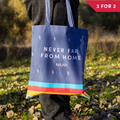 Shop Sustainably with the Never Far From Home Tote Bag.